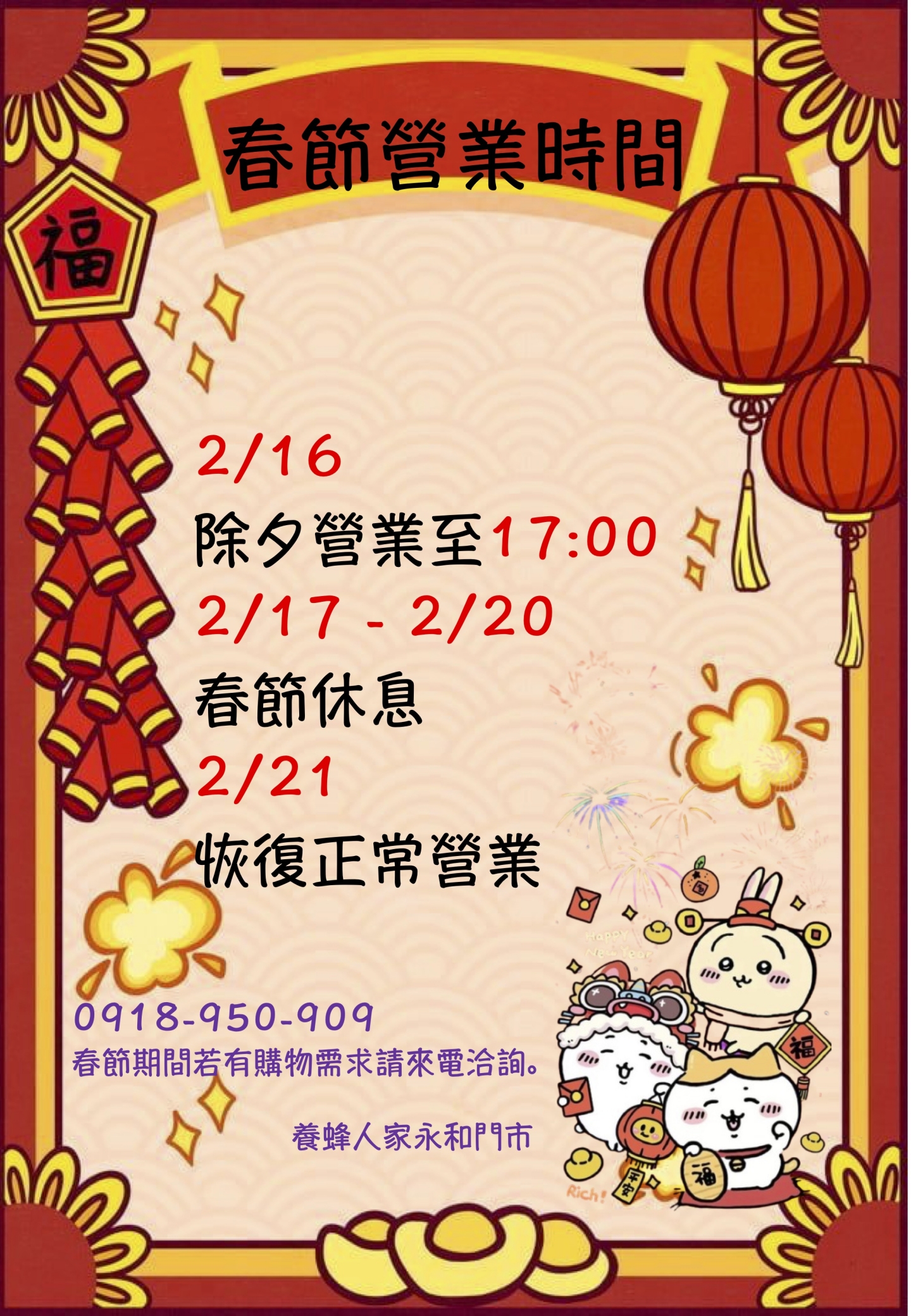 春節營業時間異動