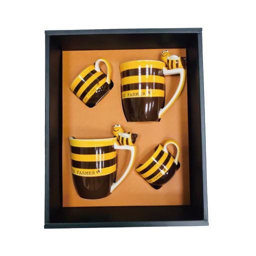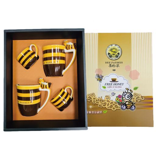 內容物:蜜蜂造型馬克杯13oz*2+橫條造型咖啡杯5oz*2