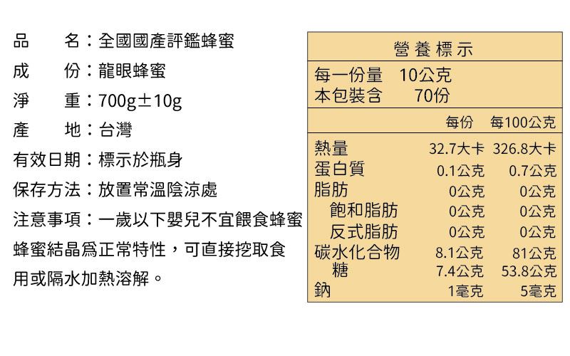 內包裝:700g玻璃瓶裝