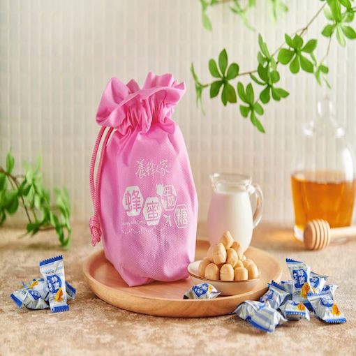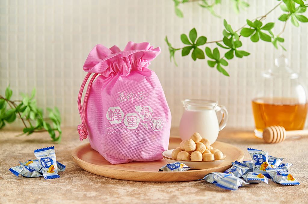 蜂蜜牛奶糖成分標示外包裝 :不織布束口袋