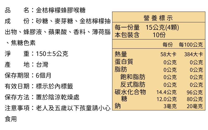 - 本產品含蜂蜜,一歲以下兒童不建議食用