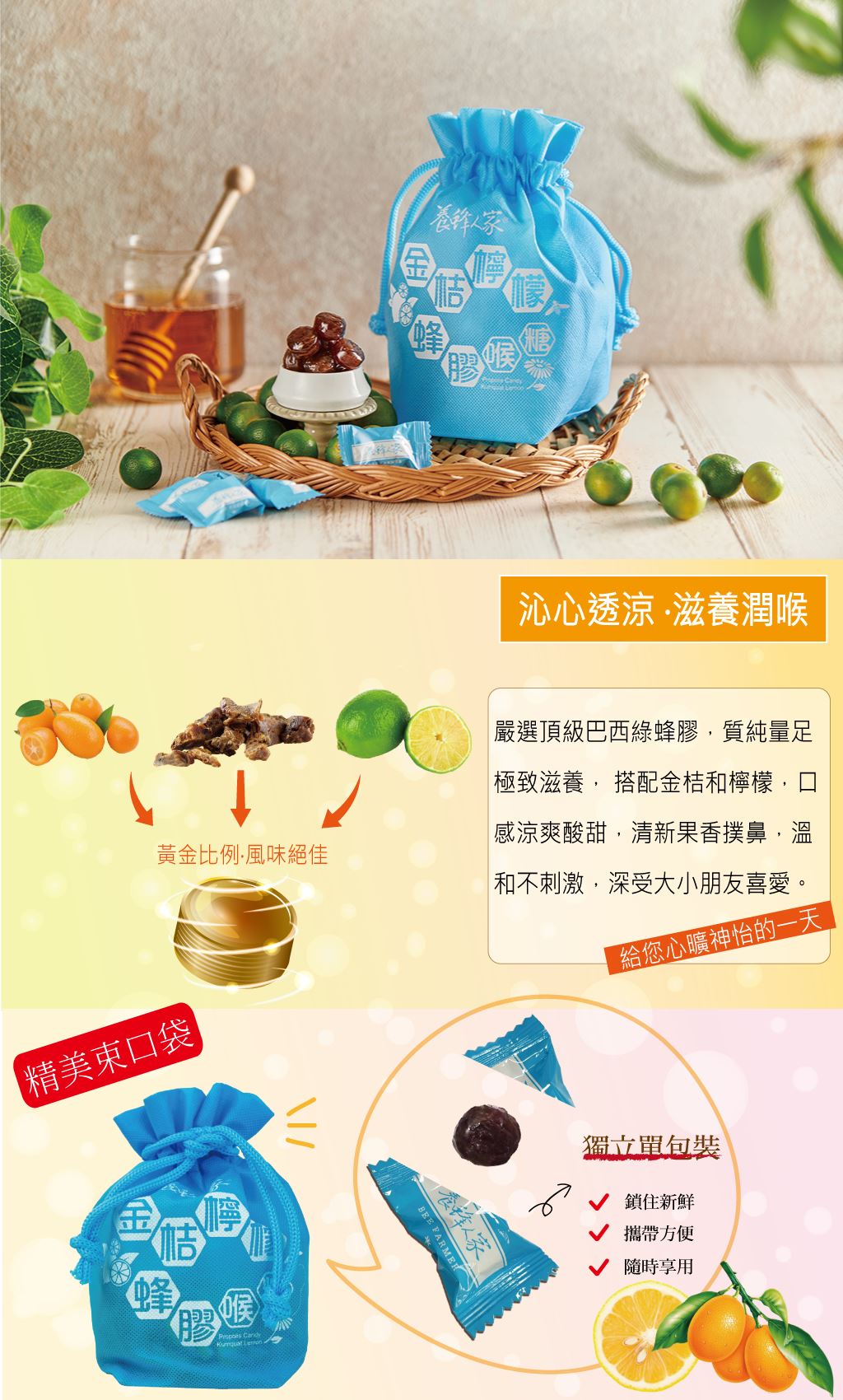 嚴選巴西綠蜂膠,質純量足極致滋養,搭配金桔和檸檬,口感涼爽酸甜,清新果香撲鼻,沁心透涼,滋養潤喉,給您心曠神怡的一天。