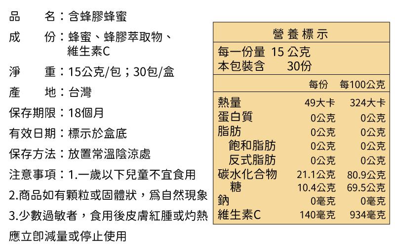 蜂膠蜜成分標示