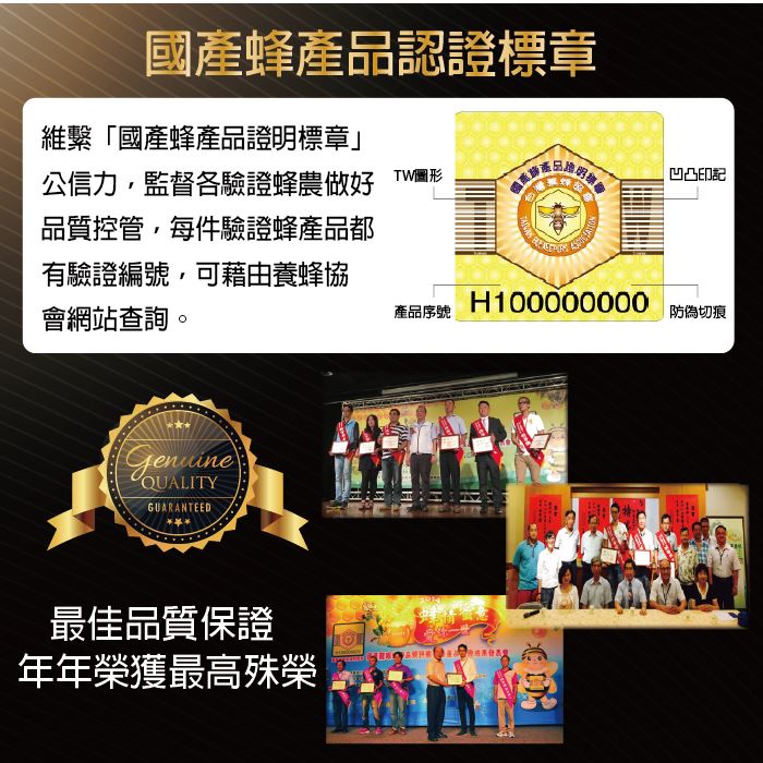 這對蜂農來說是無比的榮耀更是消費者最安心的認證