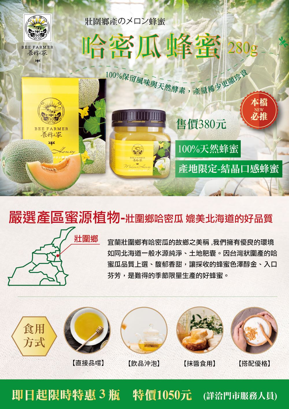 養蜂人家與宜蘭在地瓜農合作,蜜蜂不僅幫忙授粉,也採集到珍貴、美味的哈密瓜蜂蜜。